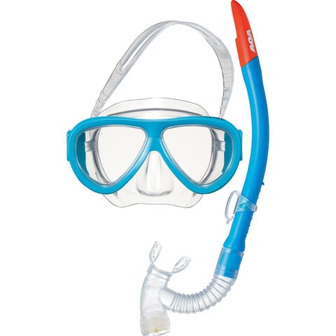 【 9 才以上の子供向け】 2 眼マスク&水の浸入を自動的に防ぐドライアッパー付きスノーケルのセット.目に優しい UV カットのプラスチックレンズでお子様の目を守り、軽量化することでマスクがずれにくくなり、スノーケリングを楽しめます!