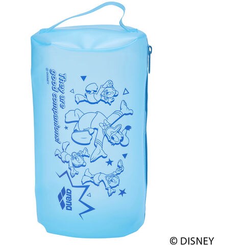 Disney(ディズニー)デザインのプルーフバッグ.1つ持っているとスイマーに便利なラウンド型.プールで泳いだあとに濡れた水着やキャップ、セームタオルなどを収納するのに便利.また、バッグインバッグがしやすいサイズのため、トレーニングに行くときのスイミング用品の収納におすすめ.中が見やすいブルー、ピンクと、中が見えにくいホワイトで使用用途や好みに合わせて使用可能.ドナルド・ダックとその甥っ子たちヒューイ・デューイ・ルーイをプリントした楽しい雰囲気のデザイン.