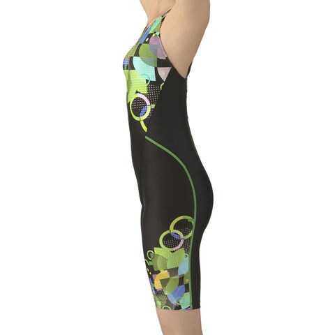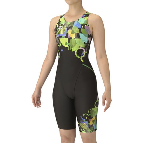 アリーナ arena フィットネスワンピーススパッツ オープンバック ハーフレッグ ひっかけパッド レディース 水着 スイムウエア 水泳 競泳 プール トレーニング 練習 泳ぎやすい AS5FWF12L ブラック/グリーン