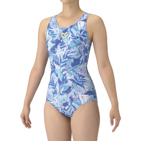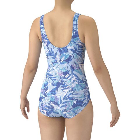 アクアビクスや水中ウォーキングなど、健康やリフレッシュのためにプールでのエクササイズを楽しむフィットネススイマーにおすすめのフィットネス水着.脚さばきのいいワンピースタイプで、U字型のバックスタイルは着脱が簡単.パッドは、[差し込みパッド]を使用しており取り外しが可能.また、パッドポケット内に収まるため、脱ぎ着がしやすく、水の中でもしっかりフィットし、安心感のある仕様.葉っぱや花などの植物をモチーフとしたプリントデザイン.プールでの顔映りをよく見せてくれるような色鮮やかなカラーリングで表現.
