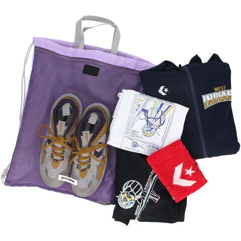 コンバースのパーテーション付きナップサック.荷物を分納することができるため、部活動で汚れたものを分けて収納したいときにも便利.