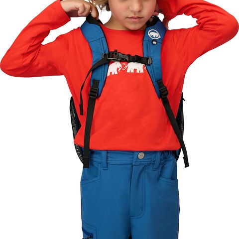 容量によって、2~9歳のキッズ用に細分化された小さなデイパック.マムートのぬいぐるみ付き.