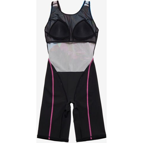 ゆったりしたフィット感で自分のペースで泳ぎたい方向けの[Loosen(ルースン)]シリーズ.縦横に自由に伸びて着脱もスムーズ.トレーニング中も心地よくフィットしてズレにくい、環境配慮型素材[Ultra Stretch 0(ウルトラ・ストレッチ・ゼロ)]採用のレディースニースキンです.肩ストラップは食い込みを軽減するめの幅広仕様です.着脱時のもたつきが少なくズレにくく動きやすい、縫い込み式のカップ付き.クロッチ部分には肌あたりのよい柔らかな素材を使用しています.股下のハギをなくし、スムーズな脚の動きを実現しました.安心感のある厚みがボディラインをほどよくカバーします.はっ水機能付き(非フッ素はっ水).