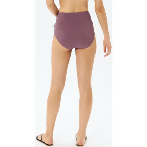 非日常でととのえるこころの健康をテーマに、大人のスイムウエアを提案する[ SPEEDO BREATH( スピード・ブレス ) ]ハイウエスト仕様のレディースビキニボトムです. GRS 認証の捨てられるべき廃棄物を 100% 使用したナイロン糸[ RECO NYLON( レコ・ナイロン ) ]を使用した環境配慮型素材[ SENSITIVE RECO( センシティブ レコ ) ]を採用.サラッとした質感で、快適なストレッチ性が特長です. UV ケア (UPF15-30 、紫外線カット率 85% 以上 ) 機能付き.おへそが少し隠れるハイウエスト仕様.サイドのドローコードでギャザーの量を調節できます.股上深めで脚長効果も期待できます.シンプルなデザインで、トップスとのさまざまなコーディネートが楽しめます.
