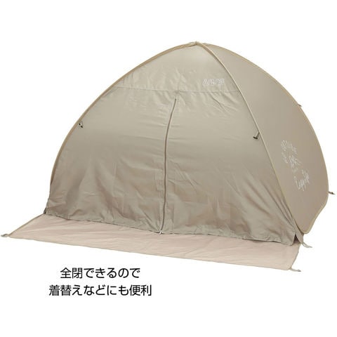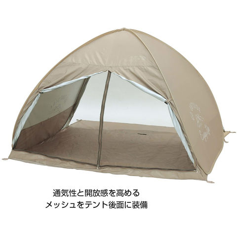 パッと広がるポップアップテント.シルバーコーティングで夏の日差しや紫外線を約 90 カット.ビーチやピクニックはもちろんアウトドアフィールドでも活躍.全閉できるので着替えなどにも便利.テント前後面に出入口を装備.フロアの広さ ( 約 )2.2 畳 3 ~ 4 人用.テント内両サイドに小物入れに便利なポケットを装備.持ち運びや収納に便利なキャリーバッグ付き.テント奥行 130CM .
