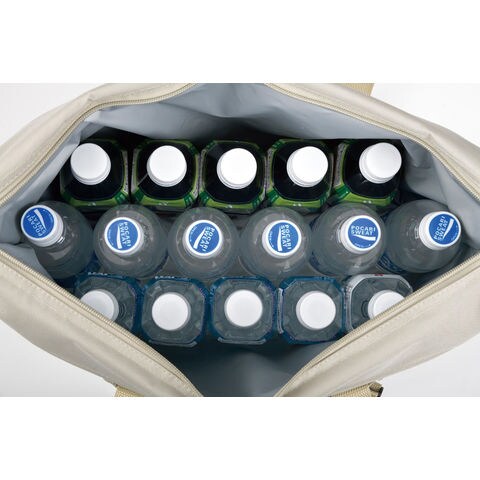 素材:本体表地 / ポリエステル (PVC コーティング ) 撥水加工、内生地 /EVA 防菌加工、断熱材 / ポリエチレンフォーム、メッシュポケット付板 / ポリエチレン、ベルト / ポリプロピレン