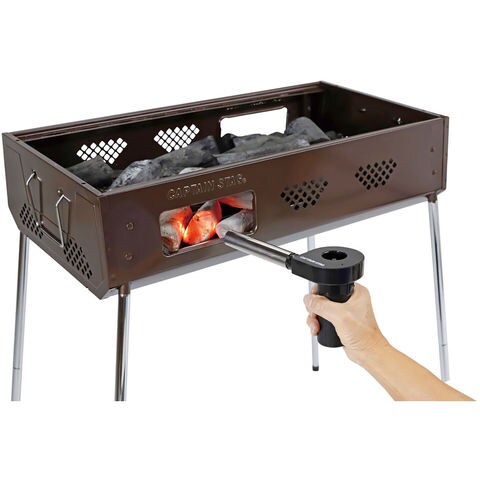 バーベキュー ・ 焚き火の火起こしに最適な電動送風機.手に入りやすい乾電池を使用するタイプで、充電の手間いらず.ロングノズルで安全です.