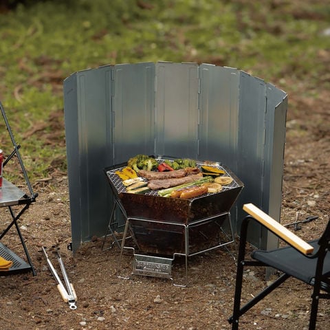 焚き火に最適な、高さ 60CM の大型ウィンドスクリーン.風を防ぐウィンドスクリーンと、熱を反射するリフレクターの 2 つの効果.焚き火の周りに設置することで、風を防いで炎を安定させる風防となります.熱を後ろに逃さず前に反射し、焚き火の炎をより暖かくします.持ち運びに便利な収納袋付き.