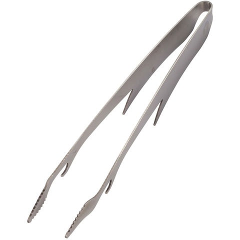 キャプテンスタッグのシンボル鹿のツノをモチーフにしたトング.どちらで置いてもトングの先端が付かず衛生的.裏返してアミ交換用フックとしても使えます.焼く、食べるに適した長さ.