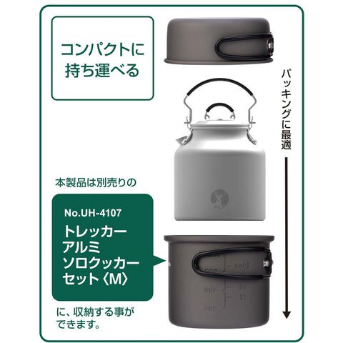 キャンプ系 YOUTUBER [ FUKU ]さんとのコラボアイテム.軽量で熱伝導に優れたアルミ製.アルマイト加工.別売の[ UH-4107 ]トレッカーアルミソロクッカーセット M に収納することができます.