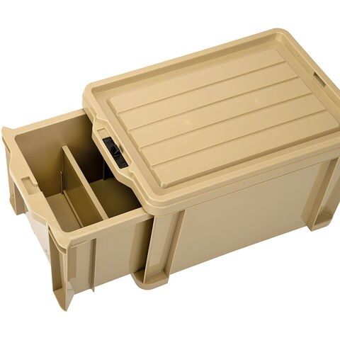 積み重ねた状態でも中身が取り出せる、引き出しコンテナボックス.積み重ねロックと飛び出し防止ロックのダブルロック仕様.