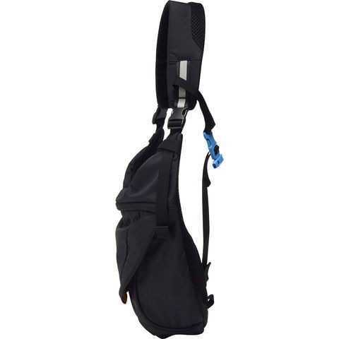 機能:肩にフィットするショルダーハーネス、一定の負荷がかかると開放するホイッスルつきのチェストバックル、内側にネームホルダー、本体とショルダー部分にリフレクター