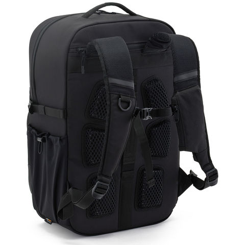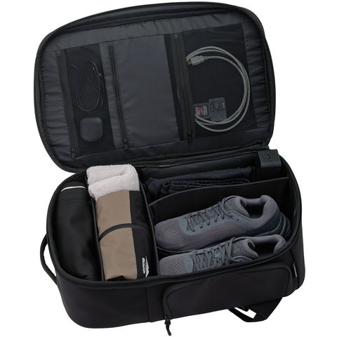 身体に沿った背面のパッドが背中をサポートし、背負い心地と通気性を確保.軽量性と耐久性に優れたコーデュラ素材を採用.背面にはパソコン用の収納部分あり.メインコンパートメントには仕切りがあり、荷物を区分けられる仕様.ペットボトルを入れられるサイドポケット.メインコンパートメントに繋がるサイドポケット.背面のゴムバンドはスーツケースに引っかけられる.表に小物用収納可能なポケット.ショルダーストラップにはカードが入れられる収納スペース搭載.バックパックの底のリフレクトテープが視認性を確保.
