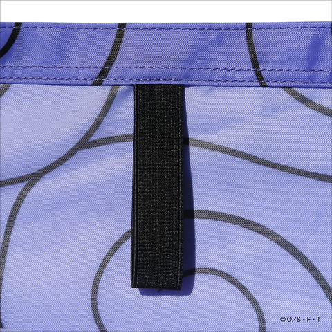 大人気 TV アニメ『 ONE PIECE 』とのスペシャルコラボレーションアイテム.悪魔の実”ゴムゴムの実”デザインのトートバッグ.小さく折りたたみができ A4 サイズが収納可能.