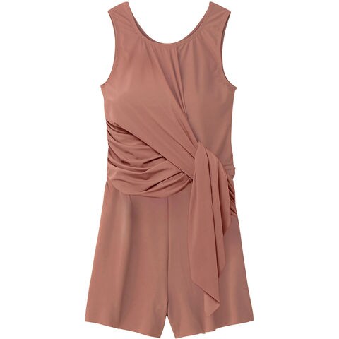 非日常でととのえるこころの健康をテーマに、大人のスイムウエアを提案する[ SPEEDO BREATH( スピード・ブレス)].アシンメトリーなデザインのレディースオールインワンです. GRS 認証のすてられるべき廃棄物を 100% 使用したナイロン糸[ RECO NYLON (レコ・ナイロン)]を使用した環境配慮型素材[ SENSITIVE RECO( センシティブ レコ ) ]を採用.縦にも横にも快適に伸びる 4WAY ストレッチ性. UV ケア( UPF15-30 、紫外線カット率 85 以上)機能付きです.左右で表情の異なるアシンメトリーデザイン.右側はウエスト部分にスリットを入れ、抜け感を演出.左側はカシュクールドレープのデザインポイントをつけました.差し込みタイプのカップ付き.バックス・