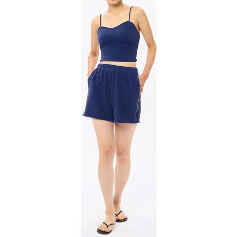 非日常でととのえるこころの健康をテーマに、大人のスイムウエアを提案する[ SPEEDO BREATH( スピード・ブレス)].ショーツとしても水着としても使えるレディースショーツです.環境配慮型素材を採用.縦にも横にも快適に伸びる 4WAY ストレッチ性. UV ケア( UPF15-30 、紫外線カット率 85 以上)機能付きです.毛足の短いパイル生地はソフトでフェミニンな風合いです.インナー付きで水着としての着用のほか、普段使いのショーツとしてもご活用いただけます.インナーはボックス型で、滑らかな着心地です.両サイドのパイピング仕様がデザインポイントになります.レトロ雰囲気とトレンドが融合したバランスのよい一枚です.