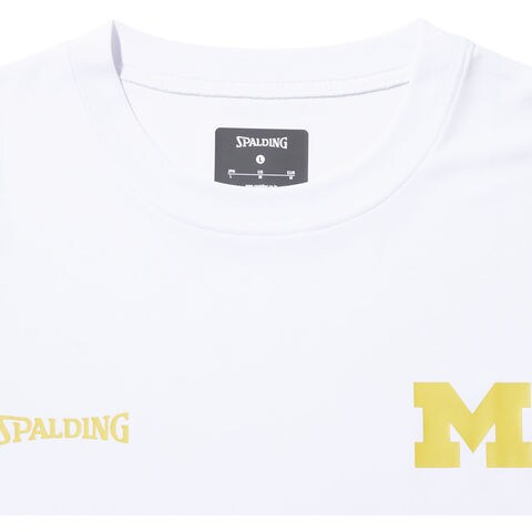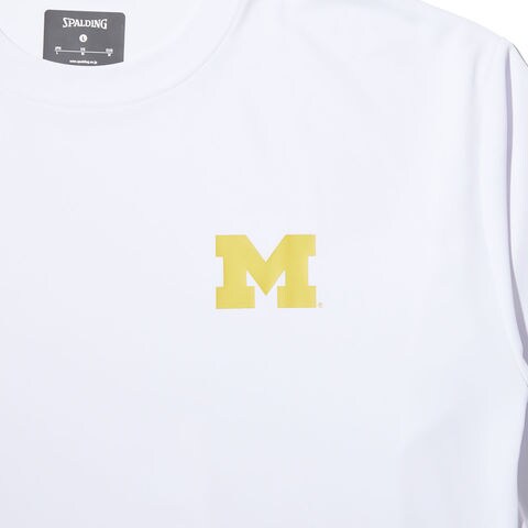 右胸に SPALDING ロゴ、左胸に M ロゴを配置したシンプルな長袖 T シャツ.左袖の” WOLVERINES ”がポイントです.