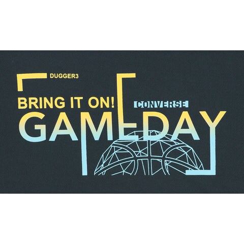 シンプルなタイポグラフィにグラデーションを効かせた T シャツデザイン.柔らかな肌触りに吸汗速乾を兼ね揃えたスポーツ向けアイテムです.