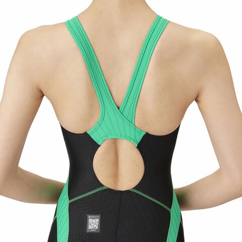 アリーナ arena レーシングワンピーススパッツ ( オープンバック・ハーフレッグ ) AS4FRC50L ブラック/グリーン