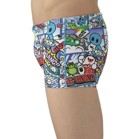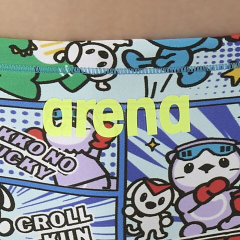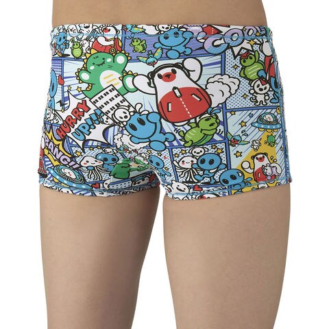 トレーニングカテゴリー[TOUGHSUITシリーズ].大会に向けて練習を重ねる頻度が高いスイマーにオススメの練習用水着.環境に配慮したリサイクルポリエステル素材[タフスキンEP]を使用し塩素に強く長持ち.全てのスイマーに人気のアリーナくんの総柄ショートレッグタイプ.AS5FWM01Mで展開するテーマと連動する冒険物語.アメリカンコミック調の柄は鮮やかな色合いとダイナミックな線が特徴でインパクトのあるデザイン.アリーナくんたちと地球外生命体が出会い、友達になる過程をプリントに表現.カラフルな4配色の展開.※この商品は縫製上、一点一点プリント柄の見え方に違いが生じますので予めご了承ください.