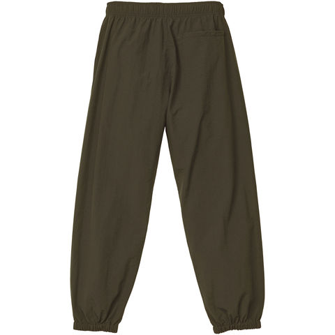 タフなナイロンをコットンのように加工して織り込んだ、やわらかな生地が魅力のトレーニングパンツ.ミリタリーのトレーニングパンツのルーズフィットなデザインを踏襲しつつ、横から見たときに膨らむようなバルーンシルエットとなるようにアジャストされたことで、流行りの大きめなトップスとの相性を最大まで引き出した魅力的なアイテムとなりました.プリントなどの加工がしやすいシンプルな縫製仕様に落とし込み、アパレルからスポーツのユニフォームまで、さまざまな用途に活用できるように企画.ブーム真っ只中のスニーカーやユーズドアイテムとの相性も抜群です.