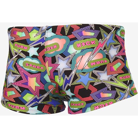 日々プールでトレーニングに励む学生やアクティブスイマーを応援する、練習用スイムウエアコレクション[ TURNS( ターンズ ) ].高い耐塩素性とデザイン性を兼ね備えたメンズボックスです.毎日のハードなトレーニングを支える高い耐塩素性と、優れた 4WAY ストレッチ性.透けにくく安心感のある厚みと柔らかな風合いの環境配慮型素材[ ENDURANCE ECO( エンデュランス・エコ ) ]を採用しています.脚さばきのいいレッグ丈 ( 股下 6CM) .総裏地付き.気分が上がるカラフルでポップなプリント柄です.※ 1 点 1 点プリントの見え方が異なりますので、あらかじめご了承ください.