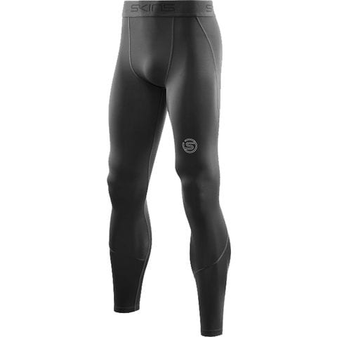 スキンズ SKINS SERIES-2 メンズロングタイツ スパッツ インナー 男性 コンプレッション 段階着圧 吸水 リカバリー ワークアウト スキー ランニング ハイキング ロゴ 18171210 ブラック