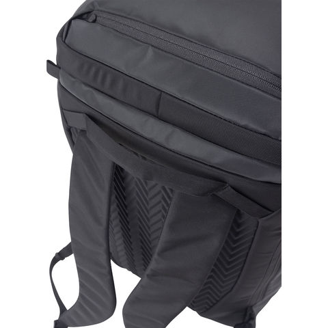 シンプルでソリッドなルックスで、通勤に適した機能をもつ大人のヒューズボックスです.サイズは泊まりの出張にも対応できる容量35L.ほどよい光沢のある生地が上質感を演出し、スーツやジャケットなどのフォーマルなスタイルにもマッチします.荷物が入っていなくても自立する構造で、大きく開閉するメインコンパートメントは収納しやすく、15インチまで対応するPCスリーブとガジェットや小物の収納に便利なオーガナイザーポケットを内蔵.フラップを開けたまま移動できるように、本体内側にグラブハンドルを備えています.フロントの縦型ポケットは止水ファスナーを備えているため、傘やボトルなどの収納に便利です.