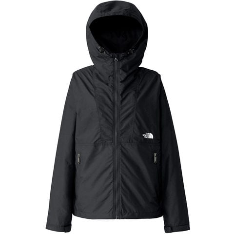ザ・ノース・フェイス THE NORTH FACE コンパクトジャケット レディース アウター 上着 フーディ パーカー 軽量 撥水 防風 普段着 キャンプ ハイキング 旅行 持ち運び 収納袋付き コットンライク NPW72530 ブラック