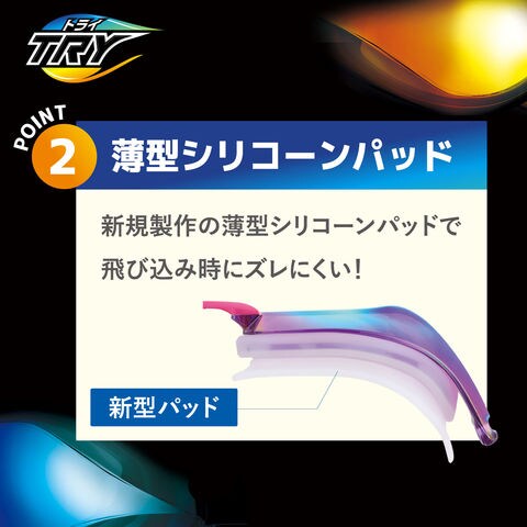 特徴:【やさしいクッションで長時間快適】目の周りにやさしく密着するクッション付で、長時間の着用でも痛くなりにくく、ゴーグル跡もつきにくい快適設計です.飛び込みの衝撃でも安定し、ズレにくいので練習から本番まで安心.お子様の目を守りながら、思いきり泳ぎに集中できます.