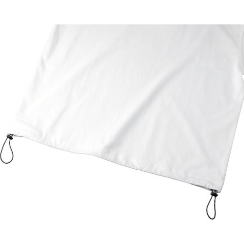 左右の裾口に、アクセントとなるバイカラーのドローコードを配した T シャツ.ドロップショルダーで全体的にゆったりとしたシルエットに仕上げており、裾を絞って好みの丈に調整することでシルエットに変化をくわえられます.さらに、裾を絞らずそのまま着ればリラックスした雰囲気に.また、カジュアルでありながらも、毛羽の少ない[コンパクトコーマ糸]を使用した上質でなめらかな生地を採用しているため、大人の品が漂います.綿 100% 生地なので、お好みの加工を施すことも可能.夏フェスのグッズや、ゴープコア系アイテムなど、幅広い用途にアジャストすること間違いなしの一品です !