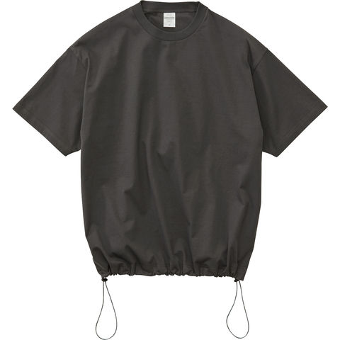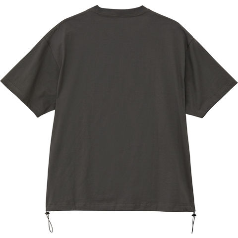 左右の裾口に、アクセントとなるバイカラーのドローコードを配した T シャツ.ドロップショルダーで全体的にゆったりとしたシルエットに仕上げており、裾を絞って好みの丈に調整することでシルエットに変化をくわえられます.さらに、裾を絞らずそのまま着ればリラックスした雰囲気に.また、カジュアルでありながらも、毛羽の少ない[コンパクトコーマ糸]を使用した上質でなめらかな生地を採用しているため、大人の品が漂います.綿 100% 生地なので、お好みの加工を施すことも可能.夏フェスのグッズや、ゴープコア系アイテムなど、幅広い用途にアジャストすること間違いなしの一品です !
