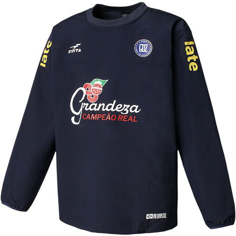 FINTA の定番アイコン[ GRANDEZA ]のプルオーバーピステトップ.撥水性の高い布帛素材で季節の変わり目の重ね着にも便利.ジュニアから大人まで同デザインの展開で、チームウェアや親子コーデにも最適です.
