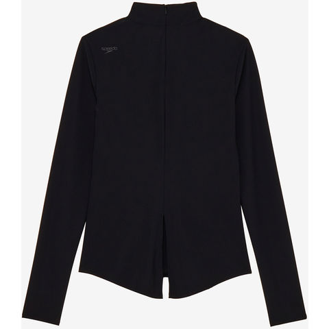 非日常でととのえるこころの健康をテーマに、大人のスイムウエアを提案する[ SPEEDO BREATH( スピード・ブレス ) ].女性らしいボディラインを引き立てるレディースラッシュガードです. GRS 認証の捨てられるべき廃棄物を 100% 使用したナイロン糸[ RECO NYLON( レコ・ナイロン ) ]を使用した環境配慮型素材[ SENSITIVE RECO( センシティブ レコ ) ]を採用.サラッとした質感で、快適なストレッチ性が特長です. UV ケア (UPF15-30 、紫外線カット率 85% 以上 ) 機能付き.首元の UV ケアもできるハイネックデザインで、バスト下から裾にかけての絶妙なラインが美しいボディラインを演出します.バックスリットがこなれた印象.シンプルながらもこだわりが詰まっ・