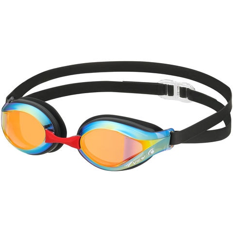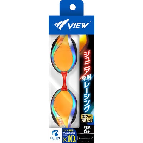 くもり止め機能 10 倍のスワイプアンチフォグ搭載.薄型シリコーンクッションで飛び込み時のズレ軽減.ジュニアサイズのレーシングゴーグルミラータイプ.