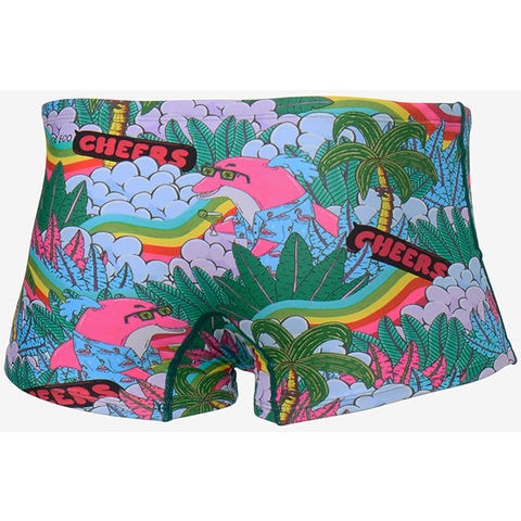 【コラボレーション企画】日々プールでトレーニングに励む学生やアクティブスイマーを応援する、練習用スイムウエアコレクション[TURNS(ターンズ)].高い耐塩素性とデザイン性を兼ね備えたメンズボックスです.毎日のハードなトレーニングを支える高い耐塩素性と、優れた4WAYストレッチ性.透けにくく安心感のある厚みと柔らかな風合いの環境配慮型素材[ENDURANCEECO(エンデュランス・エコ)]を採用しています.脚さばきのいいレッグ丈(股下6cm).総裏地付き.SPEEDO発祥の地オーストラリア出身のアーティスト[MULGA THE ARTIST(モルガ)]とのコラボレーション第6弾!今シーズンのテーマは[aloha].