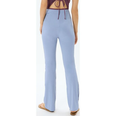 非日常でととのえるこころの健康をテーマに、大人のスイムウエアを提案する[ SPEEDO BREATH( スピード・ブレス ) ].すっきりとしたシルエットのリブパンツです. GRS 認証の捨てられるべき廃棄物を 100% 使用したナイロン糸[ RECO NYLON( レコ・ナイロン ) ]を使用した環境配慮型素材[ SENSITIVE RIB RECO( センシティブ リブ レコ ) ]を採用.快適なストレッチ性、柔らかい肌さわりが特長です. UV ケア (UPF15-30 、紫外線カット率 85% 以上 ) 機能付き.ボディラインにスッと沿う美しいシルエット.裾がやや広がっているので脚長効果も期待できます.透け感の楽しめるアイテムなので、スーツ水着とのレイヤードや、ワンピースやロングトップスのインナー使い・