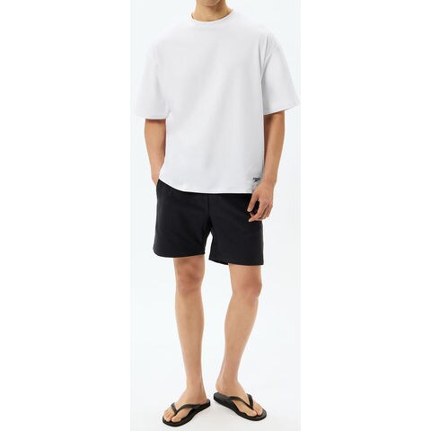非日常でととのえるこころの健康をテーマに、大人のスイムウエアを提案する[ SPEEDO BREATH( スピード・ブレス ) ].ほどよい厚みのメンズショーツです.環境配慮型素材[ ENDURANCE ECO( エンデュランス・エコ ) ]を採用.ボディラインが出にくい肉感、ハリのある生地感です.優れた 4WAY ストレッチ性. UV プロテクト (UPF50+ 、紫外線カット率 95% 以上 ) 機能付き.ウエスト周りはフラット仕様でもたつかず、スマートな印象.ストレッチ性があり着脱がスムーズです.ウエストのスピンドルは表裏の 2WAY 方式.その日のスタイリングにあわせて調整することができます.シンプルなデザインでデイリーでも重宝します.