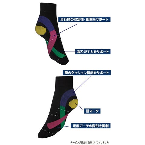 理学療法士監修の信頼設計 :森ノ宮医療大学の工藤慎太郎教授との共同開発.理学療法の専門知識に基づいたソックス構造で、機能性と履きやすさを両立しました.