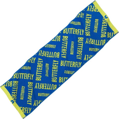 BUTTERFLYの文字を全面にあしらったスポーツタオル.