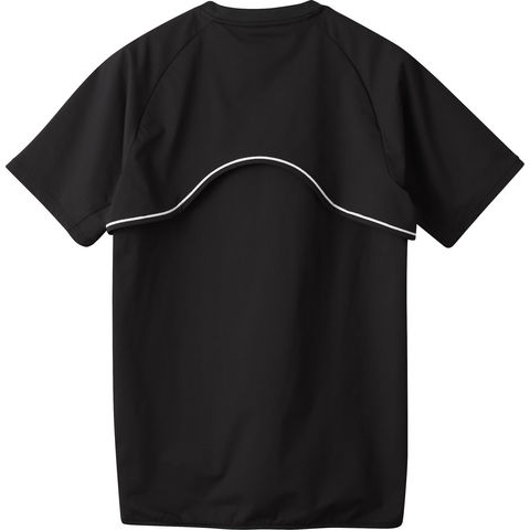 衣服内のムレを軽減することで、快適な着心地を実現した半袖バレーボールピステです.背面のベンチレーションから、衣服内に空気を取り込みことで、蒸れた空気を輩出し、体温上昇による不快感を軽減します.