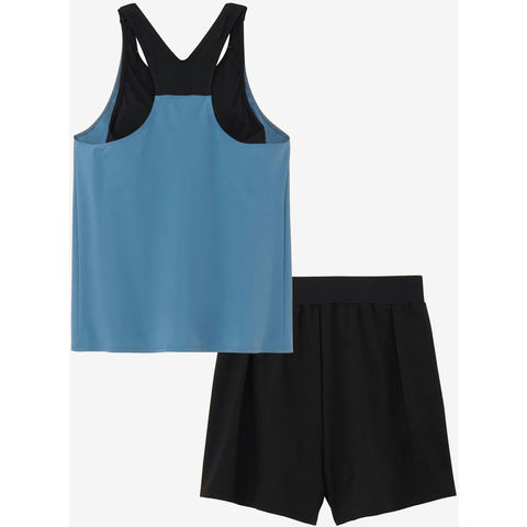 プールでのアクティビティをフレッシュに、より楽しくサポートするフィットネススイムウエアカテゴリー[POOLATHLETICS(プール・アスレティクス)].ボディラインをふんわりカバーするエアリーなセパレート水着[AIRPA(エアパ)II]です.環境配慮型へアップデート.ストレッチ性に加え、軽い着心地とさらりとした肌触りの布帛素材[SOFT&STRETCH TAFFETA(ソフト&ストレッチ・タフタ)]を採用.トップスは2枚構造でウエストラインなど隠したいところをふんわりカバーします.インナーはウエストにしっかりインできるため、めくれ上がりによる露出を軽減します.