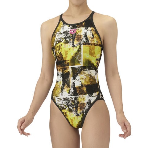 アリーナ arena トレーニングワンピース オープンバック 水着 スイムウエア レディース 女性 大人 水泳 競泳 プール フィットネス ジム 練習 タフスキン ハードトレーニング AS5FWM05L イエロー/ブラック