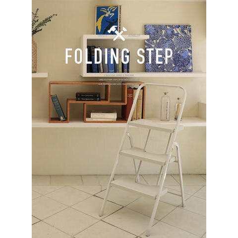 フォールディングステップ FOLDING STEP フォールディングステップ3段 アイボリー 踏み台 足場 脚立 荷下ろし 折りたたみ スリム収納 ワンタッチ開閉 ロック機能 安定感 滑り止め 耐荷重100kg 184761