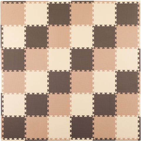 1セットで約2畳分がセットになったやわらかクッション素材のジョイントマット.お子様やペットのいるご家庭などにおすすめ.床面保護や足音を吸収してくれる役割を果たすので、マンションで音が気になるご家庭にも最適です.ジョイント部をキレイにカバーするフチ付きなので見た目もキレイに仕上がります.フローリングやインテリアとも相性のいいブラウン系.フチ付きなので敷きたいところにピンポイントに敷けます.