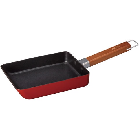 厚焼き玉子や玉子焼きをサッと作るのにちょうどいい、IH対応ちょこっと玉子焼きパン.家族のお弁当用や、1人分の玉子焼きにピッタリです.前面の傾斜はフライ返しが差し込みやすく、深型にもなっているので、食材がこぼれにくい.お弁当の具材を足したいときも扱いやすい.内面はふっ素加工なので、柔らかいスポンジと中性洗剤で洗い流すだけ.汚れが付きにくく落ちやすい.軽量で扱いやすいので疲れにくいのも特徴.シンプルで飽きのこないデザインで、ちょこっとシェフ気分が味わえます.吊るして収納できるので、気軽に毎日の料理をもっと楽しみましょう.