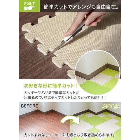 【アレンジ自由】接続部分がジョイント式なので、簡単に接続出来ます.場所に合わせてレイアウトも自由自在.カッターやハサミで簡単にカットが出来るので、部屋の柱の隅などにもピッタリ敷き詰められます.