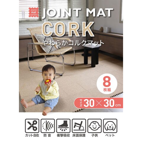 ジョイントマット JOINT MAT やわらかコルクマット8枚組 フロアマット ラグ 8mm厚 カット自在 外して洗える 衝撃吸収 床面保護 クッション 防音 耐久 保温 足音 騒音 キッズルーム 869887