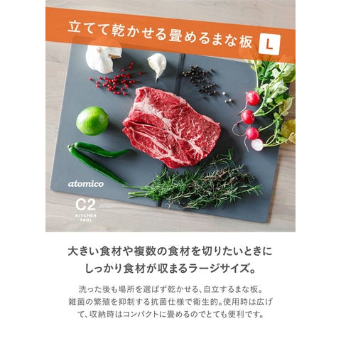 アトミコ Atomico 立てて乾かせる畳めるまな板Lダークグレー カッティングボード ラージサイズ A3サイズ A4サイズ コンパクト 収納 自立乾燥 抗菌 熱湯消毒 食洗機 お手入れ 870203