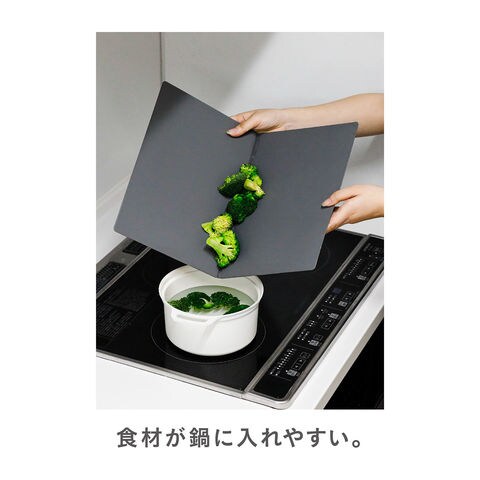 大きい食材や複数の食材を切りたいときにしっかり食材が収まるラージサイズ.広げて使えば複数の食材を切りやすい.ちょこっと切りたいときにも、まな板から食材がはみ出て切りにくいときも、食材のサイズに合わせてまな板のサイズを変えて使うことが出来ます.調理シーンに合わせて気軽に扱えて、さらに乾かしやすいので、毎日清潔にお使い頂けます.洗った後も場所を選ばず乾かせる、自立するまな板.雑菌の繁殖を抑制する抗菌仕様で衛生的.使用時は広げて、収納時はコンパクトに畳めるのでとても便利です.